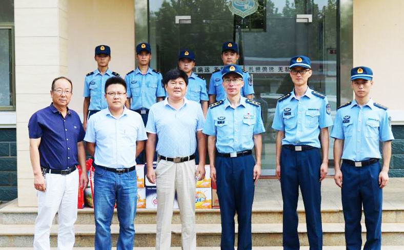 真情送给子弟兵,军民鱼水情更浓。四场领导与空军官兵共庆建军91周年,为人民子弟兵送去大米、食用油、矿泉水等生活用品和防暑降温品,在炎炎夏日送上丝丝清凉和节日的问候、真挚的祝福。(陈峰)
