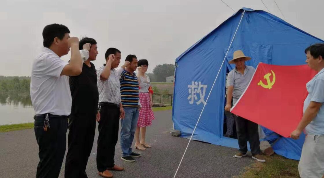 受7月上中旬强降水影响,长江上游汇口站超警戒水位,下游安庆站超设防水位。7月14日,安庆市防指发出防汛III级应急响应。分别地处上游和下游的两个农场公司迅速响应,积极投入防汛抗洪工作。同时,在防汛棚里成立临时党支部,发挥支部在防汛中战斗堡垒作用。将“不忘初心、牢记使命”主题教育与防汛抗洪紧密结起来,落实巡堤查险的任务。皖河农场公司红旗分场全体党员在防汛棚前,面对党旗宣誓,宣誓保家守堤的决心。华阳河农场退休党员、原三场基层干部王和平主动要求到抗洪一线参加寻堤查险,退休不忘初心;职工周晶和父亲周柱文成为抗洪线上父子兵。
