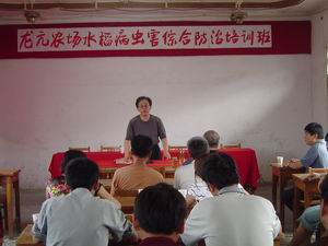 8月10日,龙亢农场举办水稻病虫害综合防治培训班, 江苏扬州大学的水稻专家为参加培训的人员讲解了 当前水稻病虫害综合防治的基本知识.( 龙亢农场党 群工作部 王戴群)