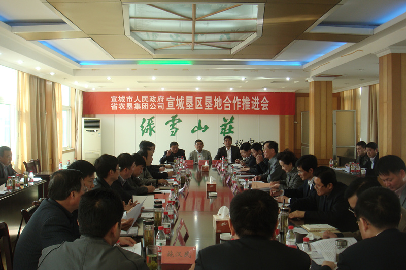 会上听取省农垦山南开发指挥部、皖垦茶业集团、安徽垦地投资开发公司介绍了农垦与宣城市战略合作推进情况以及收益分成、项目选址、项目建设费用结算、敬亭山茶场旧场区改造、皖垦茶业集团总部迁址宣城等需要市政府协调解决的相关问题。双方逐一会商了以上问题,明确了具体的解决办法。