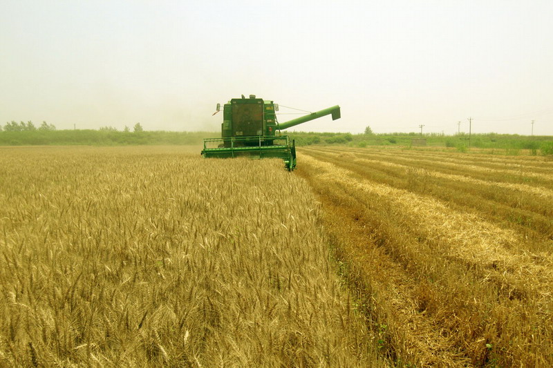 去年秋种以来,由于措施、指导、管理、落实四到位 该农场小麦基本实现了适期播种,一播全苗,壮苗越冬,病虫危害较轻,冻害影响较小,小麦长势较好,预计全场豆茬麦平均单产500公斤、稻茬麦450公斤左右。为了保证小麦丰产丰收,该农场近两年将收割机械作为农机补贴重点,加快更新步伐,去年叠加补贴购进了约翰迪尔W80联合收割机一台,今年农机补贴时农场拿出20万元购进了2台约翰迪尔C100联合收割机,动力达140马力,喂入量大,收割质量好,工作效率高,整体提升了农机装备水平和机收力量。