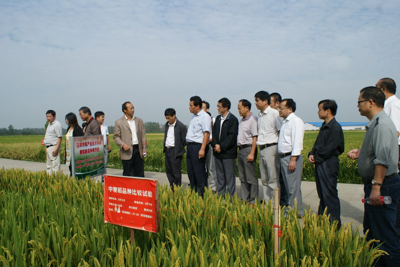 今年大圹圩农场国家现代水稻产业技术体系新品种展示区安排了55个中粳水稻和单季晚粳稻品种比较试验,皖垦糯1号机插秧示范面积4380亩。与会领导和水稻专家现场观摩了展示区和示范片,认真察看了粳稻新品种试验效果和机插秧水稻长势长相。交流研讨中,省农委、省农科院与会领导和水稻专家对农场展示区和示范片的管理技术水平、示范展示效果给予高度评价,认为大圹圩农场为本次示范现场观摩会提供了最佳现场。