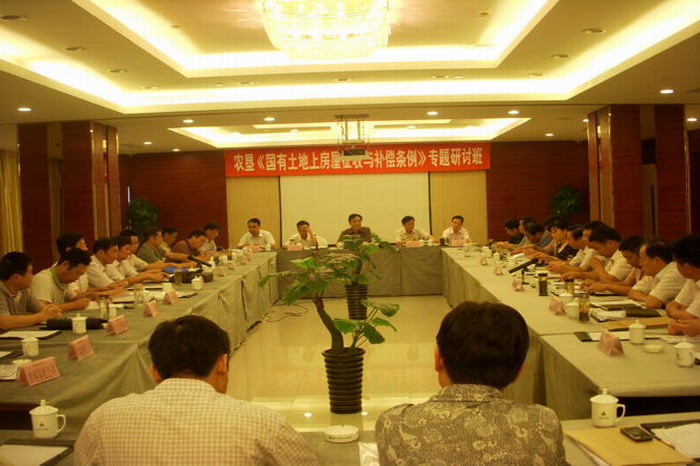 为了贯彻落实《国有土地上房屋征收与补偿条例》(国务院令第590号),配合地方各级政府做好农场(公司)房屋征收与补偿工作,保障垦地合作开发的顺利进行,8月4日至5日,安徽农垦集团举办了《国有土地上房屋征收与补偿条例》专题研讨班。在程军副总经理的主持下,集团公司相关部门和所属12个城郊型农场、6个专业开发公司负责人共同学习研讨了《条例》精神。