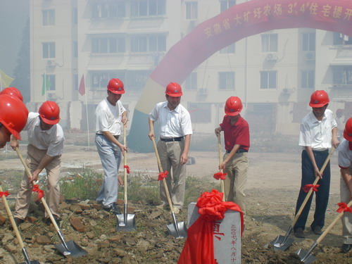 为加快农场小城镇建设建设步伐,改善职工居住条件。继职工集资建成的一期住宅楼交付使用之后,该场按照小城镇建设规划,便着手进行二期住宅楼工程建设。经过上下不懈努力,5月底完成了拆迁安置工作。8月初,农场按照《招投标法》中的招标程序,委托天长市招标代理中心,对二期住宅楼工程进行了公开招标,最终,由天长市市政建筑有限公司中标,负责工程承建。