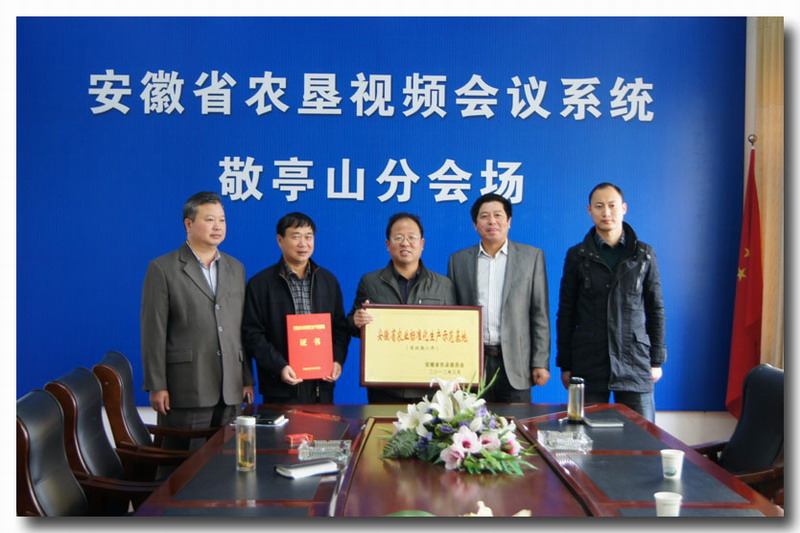 根据安徽省农业标准化生产示范基地验收认定办法,经省专家组现场考核、评审和公示,安徽农垦敬亭山茶场“敬亭绿雪”茶叶基地符合标准化生产示范创建条件要求,通过认定,被授予“安徽省农业标准化生产示范基地”称号。